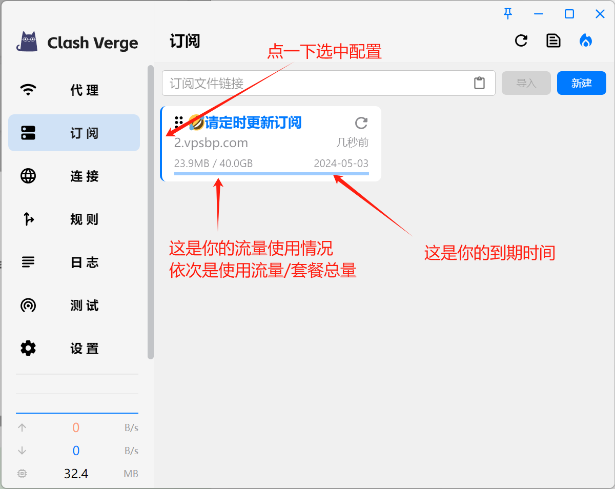 订阅添加后,我们选中我们刚刚下载订阅配置